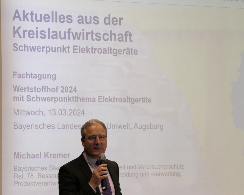 Am 13. und 14. März 2024 fand die Fachtagung „Wertstoffhof 2024“ in Kooperation mit dem Bayerischen Landesamt für Umwelt (LfU) statt. Unter dem Schwerpunktthema Elektroaltgeräte (EAG) trafen sich über 200 Fachleute, Praktiker:innen, Behördenvertreter und politische Entscheider, um aktuelle Herausforderungen, gesetzliche Neuerungen und zukunftsfähige Konzepte im Bereich der kommunalen Wertstofferfassung zu diskutieren.
